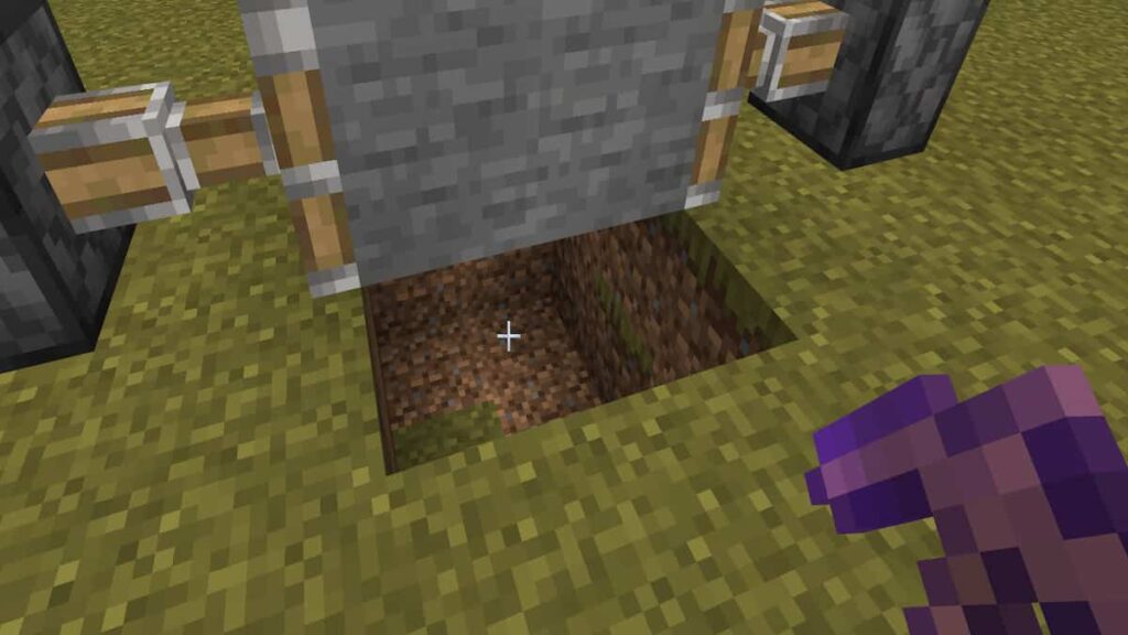 Now, dig a small 3*2 Blocks wide hole below your door. The depth of the hole should be two blocks.
