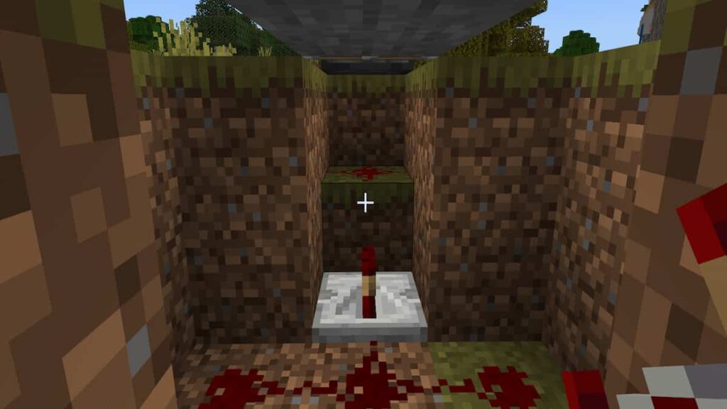 Now, dig two more mini-hole inside the same hole to place the Redstone Repeateron either side and also apply some Redstone Dust for further connectivity. The image only shows a hole on one end. You must dig an exact hole on the opposite side too.