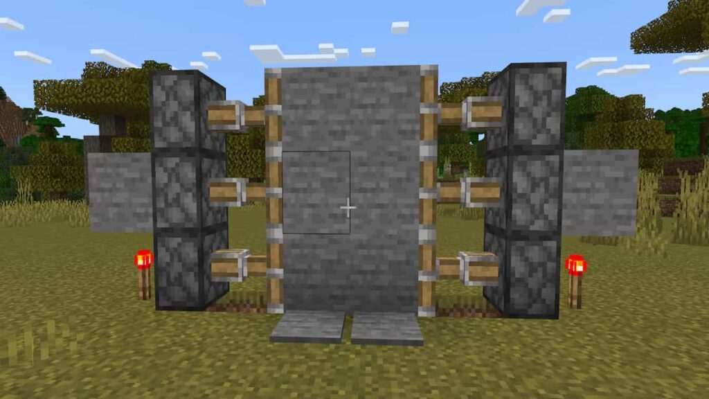 Construction of a secret door in Minecraft