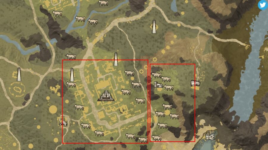 The Next best spot to find Lynx in First Light would be the area around both Pyrgos Nao and Elafry Pyrgo, as shown by the image below.